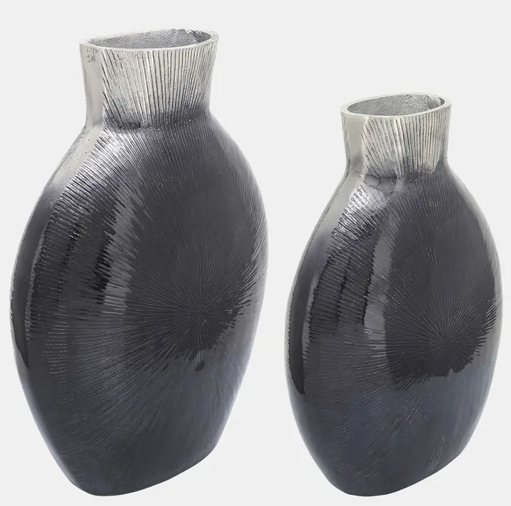 16″ Ribbed Metal Vase Blk